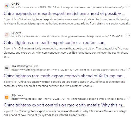Il blocco delle terre rare deciso da Xi è ANTECEDENTE di un paio di giorni circa rispetto alle decisioni di dazi incrementali trumpiani contro Pechino. Fatti.