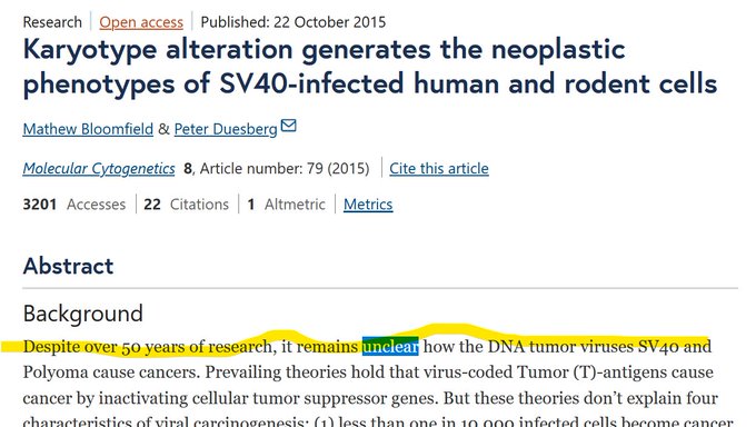 Nel caso in specie: sappiamo che il virus SV40 è oncogenico, non esiste praticamente alcun dubbio su tale aspetto, con evidenze sperimentali dati da decenni di test. Poi “sappiamo di non sapere”, nel senso non conosciamo come questo accada, si intende come venga indotto il cancro via virus; è parimenti vero, come il prof. Duesberg ancora nel 2015, che pur dopo 50 anni di studi i meccanismi oncogenici di tale virus sono ancora poco compresi. Sostanzialmente si sa che tale virus blocca il gene TP53 del DNA umano, quello dell’apoptosi, scatenando forme di cancro inguaribili, ovvero che non rispondono alle terapie tradizionali. Il resto è ancora abbastanza fumoso.