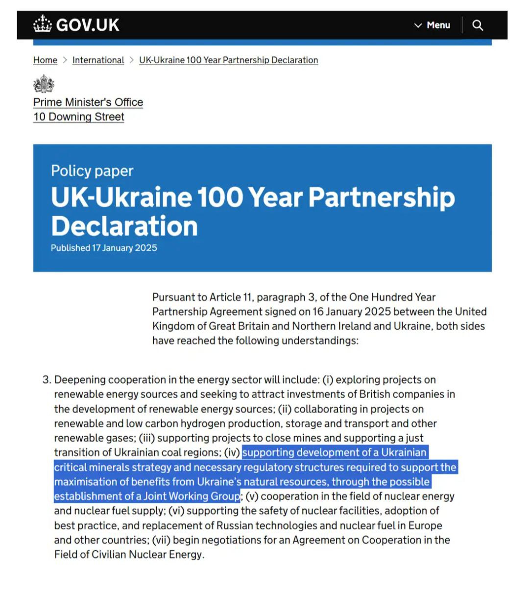 Tanto che Londra, con la sponda di Parigi, ha giù fatto un accordo col traditore degli Ucraini, Zelensky, per lo sfruttamento per 100 anni delle risorse primarie in loco.