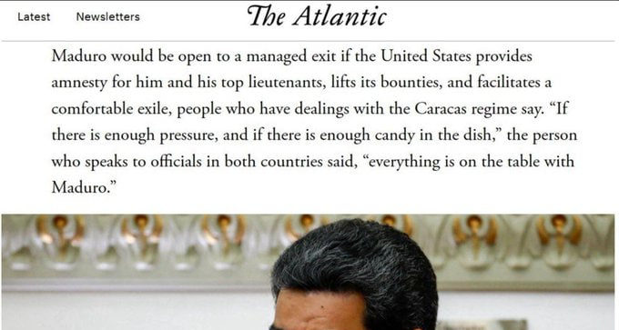 Maduro, forte coi deboli, debole coi forti: “Secondo The Atlantic, Nicolás Maduro sarebbe disposto a dimettersi se gli Stati Uniti gli garantissero l’amnistia e una vita dignitosa da qualche parte nel mondo”