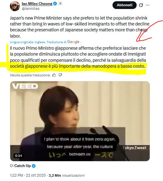 Occhio dunque al messaggio della Premier giapponese, consiglio, riguarda tutti molto da vicino..