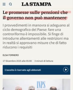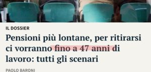 In breve, si punta nei fatti a far morire il prima possibile i pensionati, per non pagare loro le pensioni. E far lo stesso con chi sta per pensionarsi. Dall’altra tagliare l’erogazione delle pensioni, 47 anni di contributi dicono tutto. Così le elites locali pensano di salvarsi, in realtà si stanno suicidando…