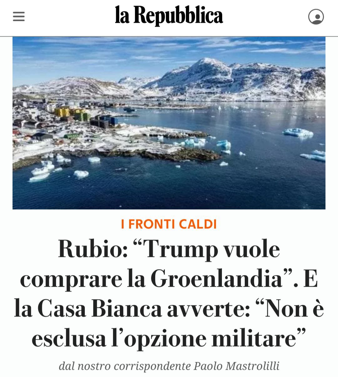 Ma poi la notizia appare su Repubblica – comunque – come desideravano i redattori della CNN: l’intervento militare USA in Groenlandia viene inventato nei titoli!