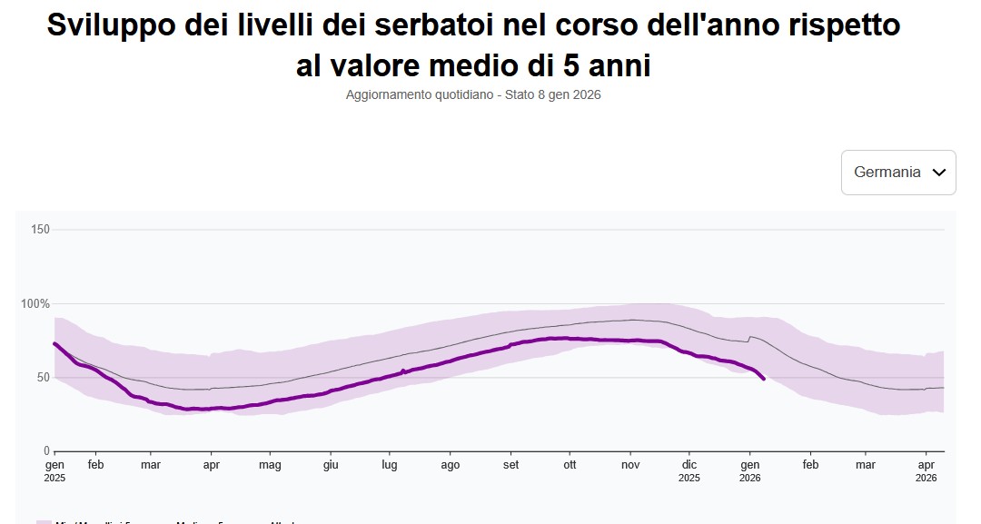 Ma il punto principale su cui focalizzarsi da qui in avanti è il freddo intenso: l’Europa sta subendo una tempesta meteo, la Goretti, che sta annichilendo le sue riserve gas, va a qualche settimana. E senza gas che può fare l’Europa?
