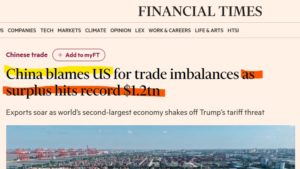Peccato Lifeng abbia dimenticato che la Cina ha appena pubblicato numeri record di trade surplus col mondo, 1.2 trn USD (=1200 miliardi di USD di surplus commerciale col resto del mondo, leggete bene).