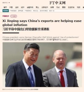 Non è dato sapere come sia possibile far convivere il consumo interno di prodotti di consumo in Cina, paese con esportazioni record, ossia produzioni locali cinesi record che di fatto deindustrializzano il mondo esterno alla Cina (visto che lo Stato cinese sovvenziona a man bassa – alla bisogna – interi settori produttivi del suo Paese). Con un imponente settore industriale cinese che produce beni poi esportati a prezzi tali da mandare fuori mercato i competitors stranieri.