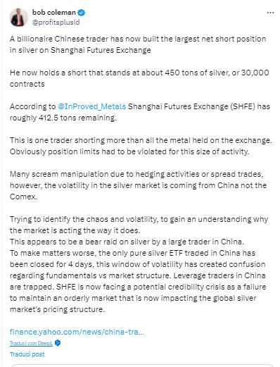 In tal guisa anche il problema della manipolazione sull’argento si aggiusterà da solo. Nottetempo.
