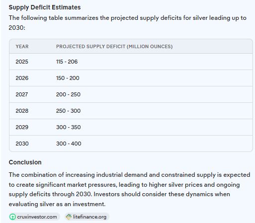 E oggi l’argento è in deficit da ben 5 anni, con deficit prospettico esplosivo.
