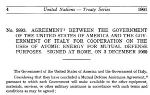 “Agreement for co-operation on the uses of atomic energy for mutual defense purposes”, Italy-USA. Signed at Rome, on 3 December 1960