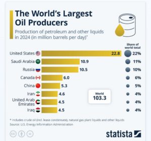 Ben sapendo che l’Europa non ha petrolio, visto che consuma oltre 10 milioni di barili di petrolio al giorno ma ne produce meno di un terzo, capiamo che gli interessi europei restano come sempre contrapposti a quelli USA, oggi il primo produttore mondiale di greggio con una produzione circa doppia rispetto al secondo.