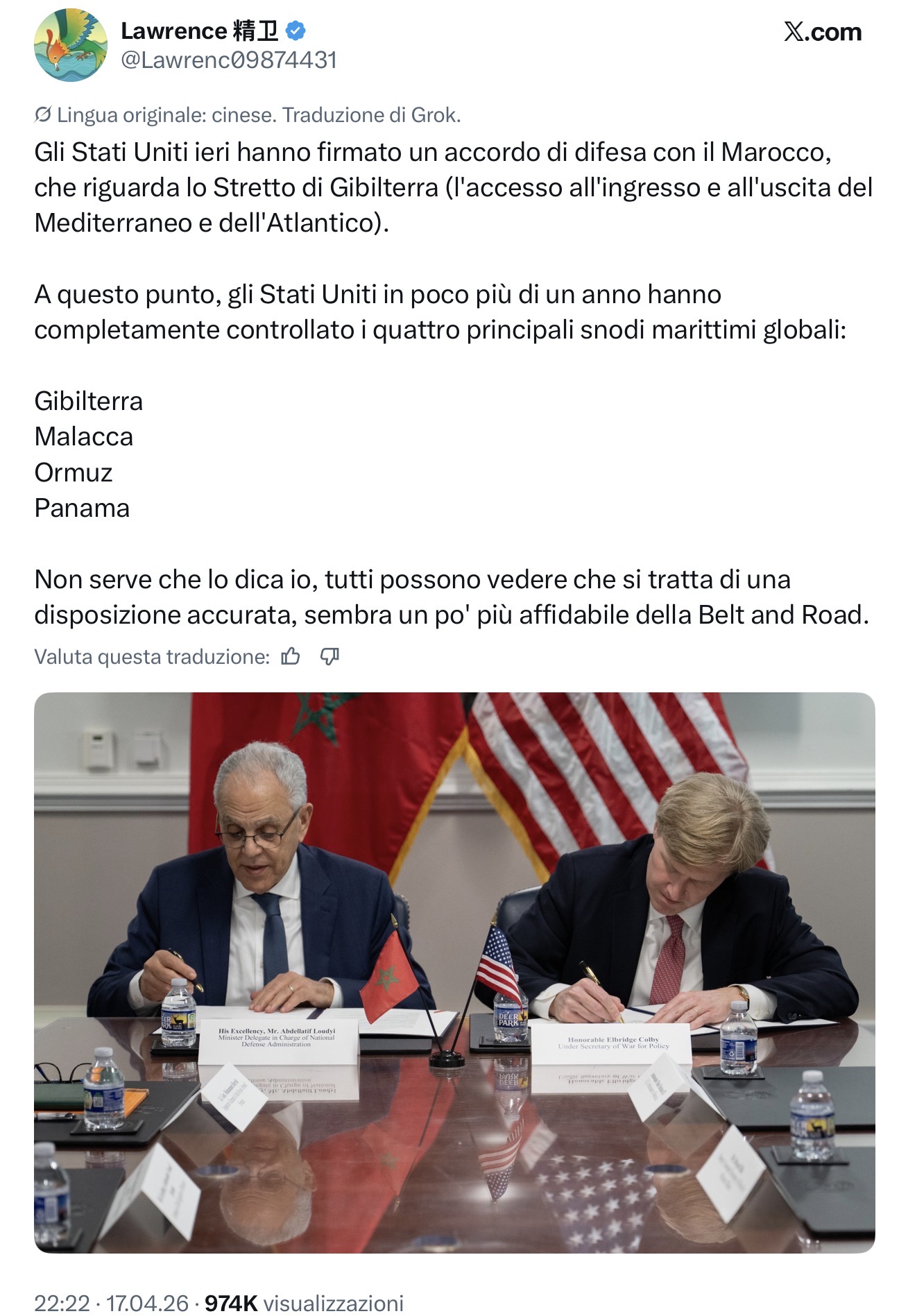 Ma proprio negli scorsi giorni sappiamo il Marocco ha firmato una intesa con gli USA, per collaborazioni sullo stretto. A termine e’ fatta anche lì.